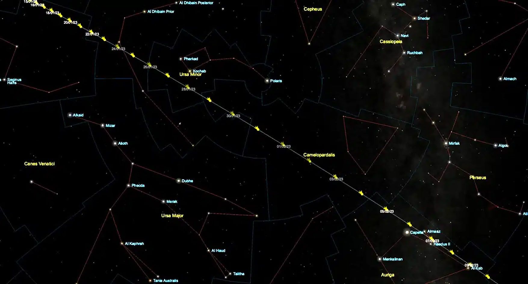 Em 12 de janeiro atingirá seu ponto mais próximo do Sol (periélio), enquanto primeiro de fevereiro espera-se que passe no ponto mais próximo do nosso planeta (perigeu) que está “apenas” a 42 milhões de quilómetros dos nossos olhos. A melhor época para observá-lo, segundo especialistas, é a partir de 24 de janeiro. No entanto, devemos estar atentos à presença da Lua, que com sua luz pode atrapalhar a visibilidade do nosso cometa. Portanto, no dia 1º de fevereiro, seria melhor observá-lo na última parte da noite, quando a Lua está em seu pôr do sol.