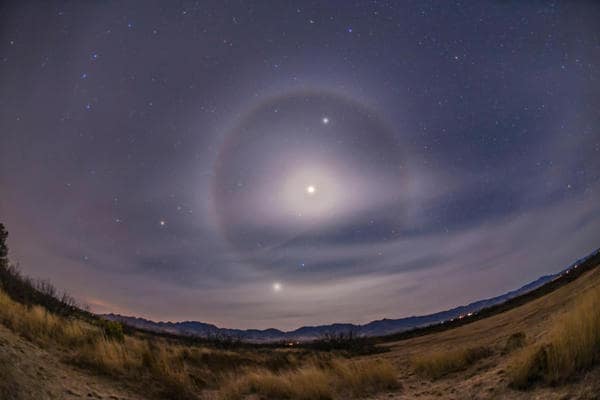 A luz da lua filtra através dos cristais de gelo e recria o efeito óptico de um grande círculo, o halo! | agência-ipa