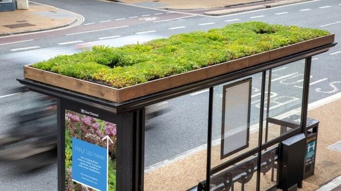 As abelhas e borboletas entrarão no transporte público? Não realmente, eles estarão esperando por você na parada. Como? Praticamente no abrigo! Isso mesmo, você leu certo.