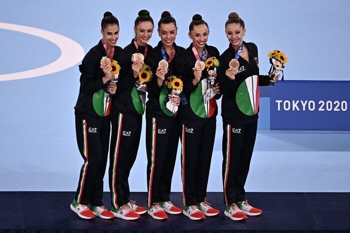 A equipe é formada pela capitã Alessia Maurelli junto com Agnese Duranti, Daniela Mogurean, Martina Centofanti e Martina Santandrea, coloridos em seus trajes, obtiveram uma pontuação geral de 87.700 (44.850 com bolas, 42.850 com argolas e paus) nas notas de Butterfly-Ninja e da Árvore da Vida.