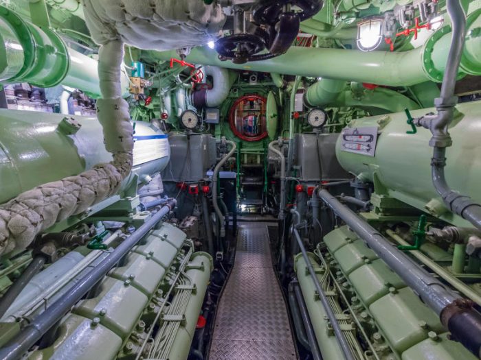 E se algo quebrar? Antes de partir para uma viagem, as chamadas “peças de reposição”, ou peças de reposição, são colocadas no submarino.